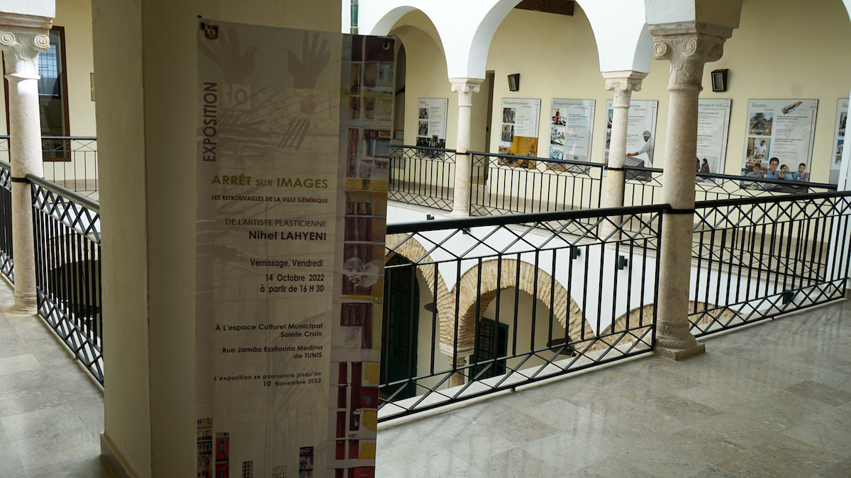 Die Kunst – sie ist auch heute noch präsent in der Altstadt von Tunis. Die ehemalige katholische Heilig-Kreuz-Kirche, von deren Dach man übrigens einen guten Blick über die Nachbarschaft bekommt, wurde aufwändig saniert und dient heute als Ausstellungsraum.