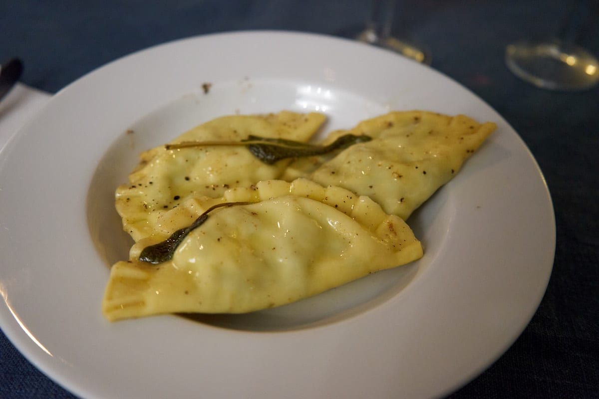 - Fertig: Mezzelune ai spinaci e ricotta con burro e salvia.