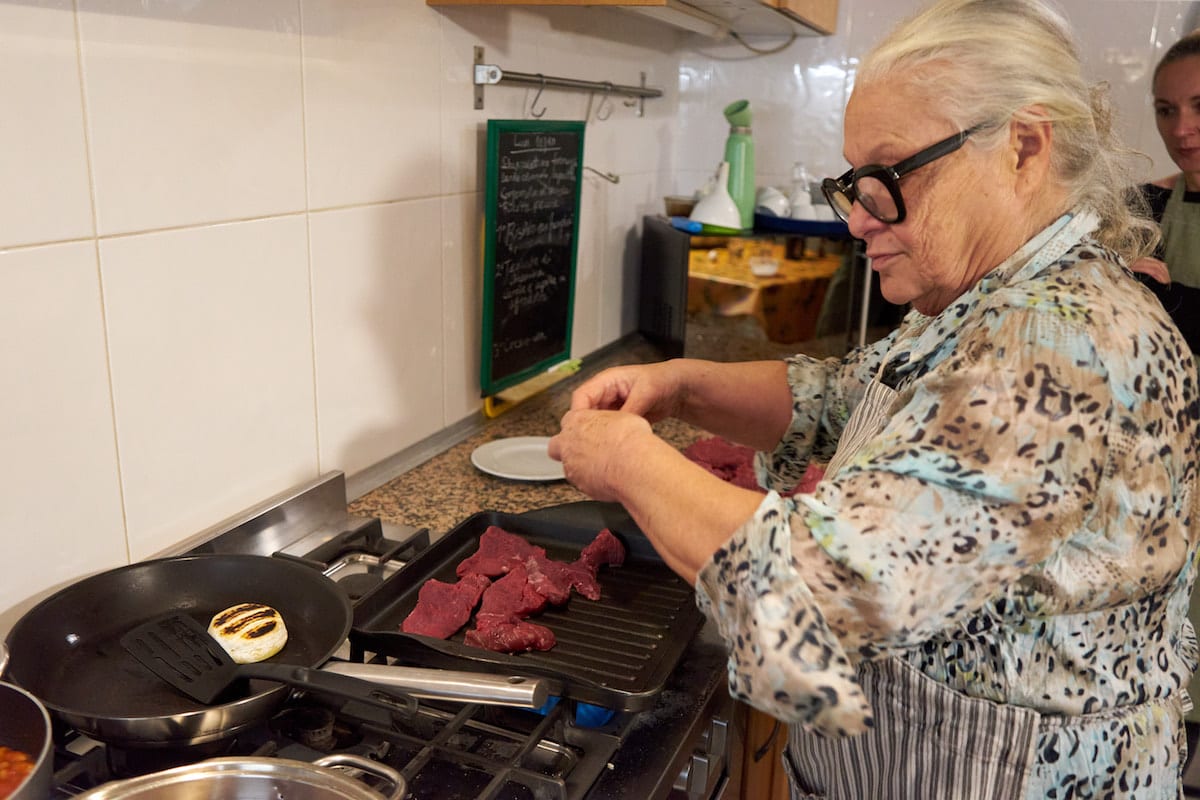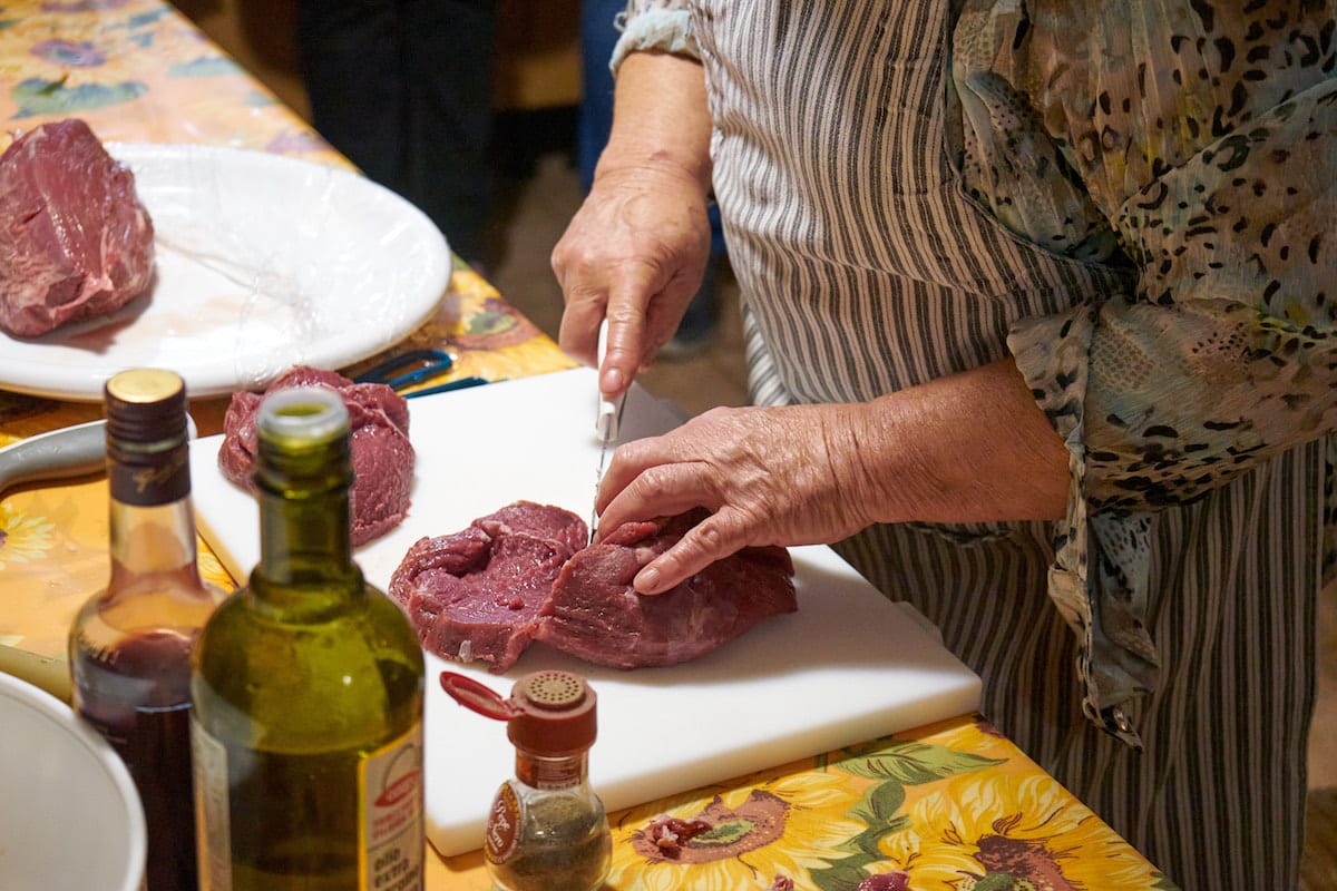 - Ornella bereitet das Fleisch für die Tagliata vor.